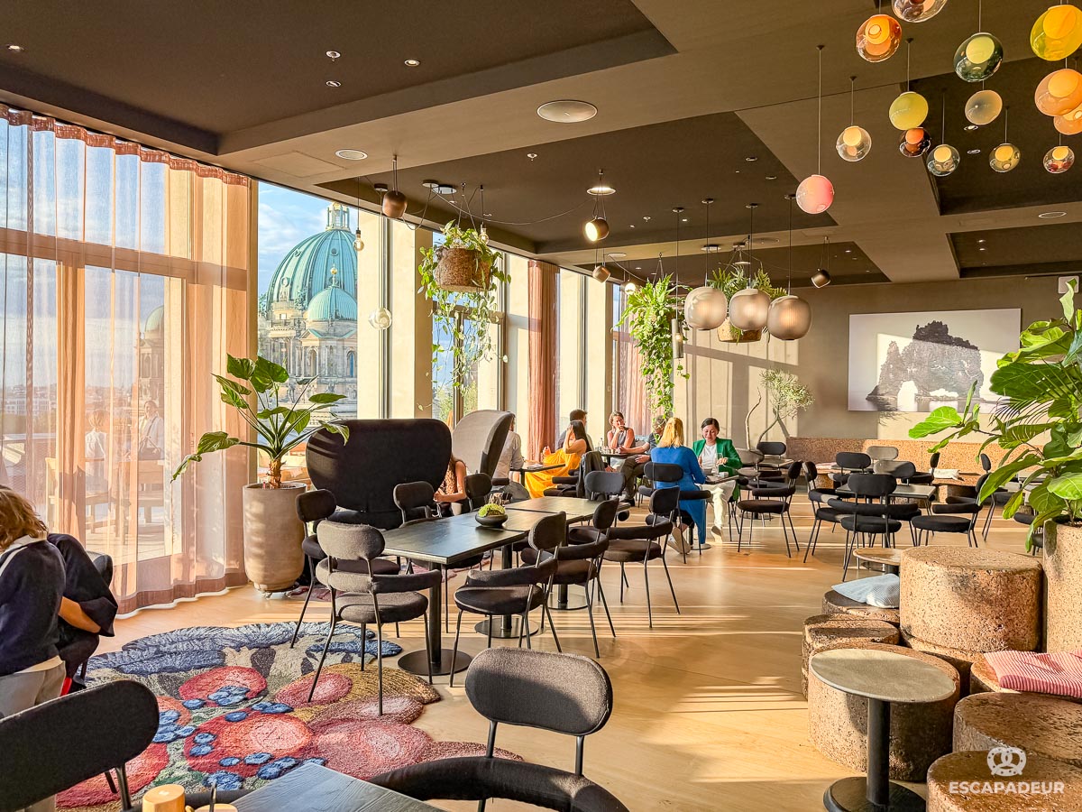 Rooftop récent installé au sommet du Humbolt Forum, Baret m’a séduit pour sa lumière et sa vue ouverte sur Berlin. La carte des cocktails est soignée, l’ambiance élégante, et l’adresse attire autant pour un verre en soirée, que pour un dîner.