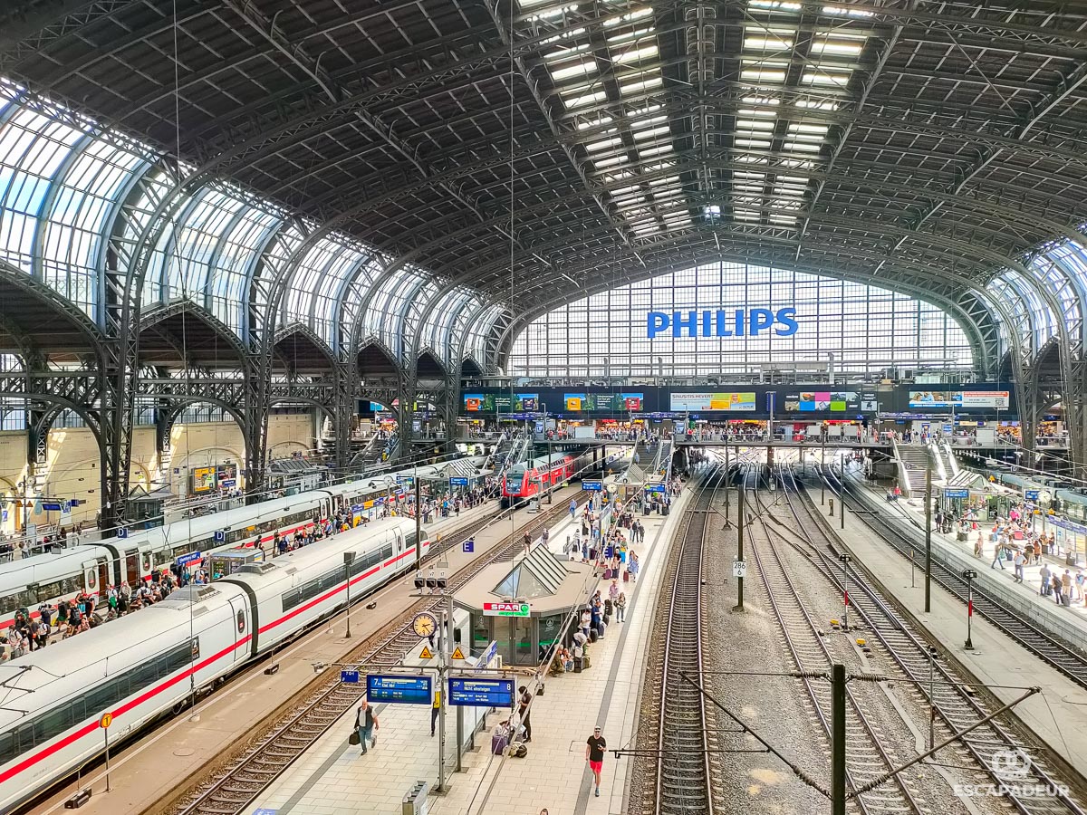 La gare centrale de Hambourg est la 1ère gare d’Allemagne en terme de fréquentation (et la 2è d’Europe, derrière la Gare du Nord à Paris), avec plus de 550.000 voyageurs par jour.