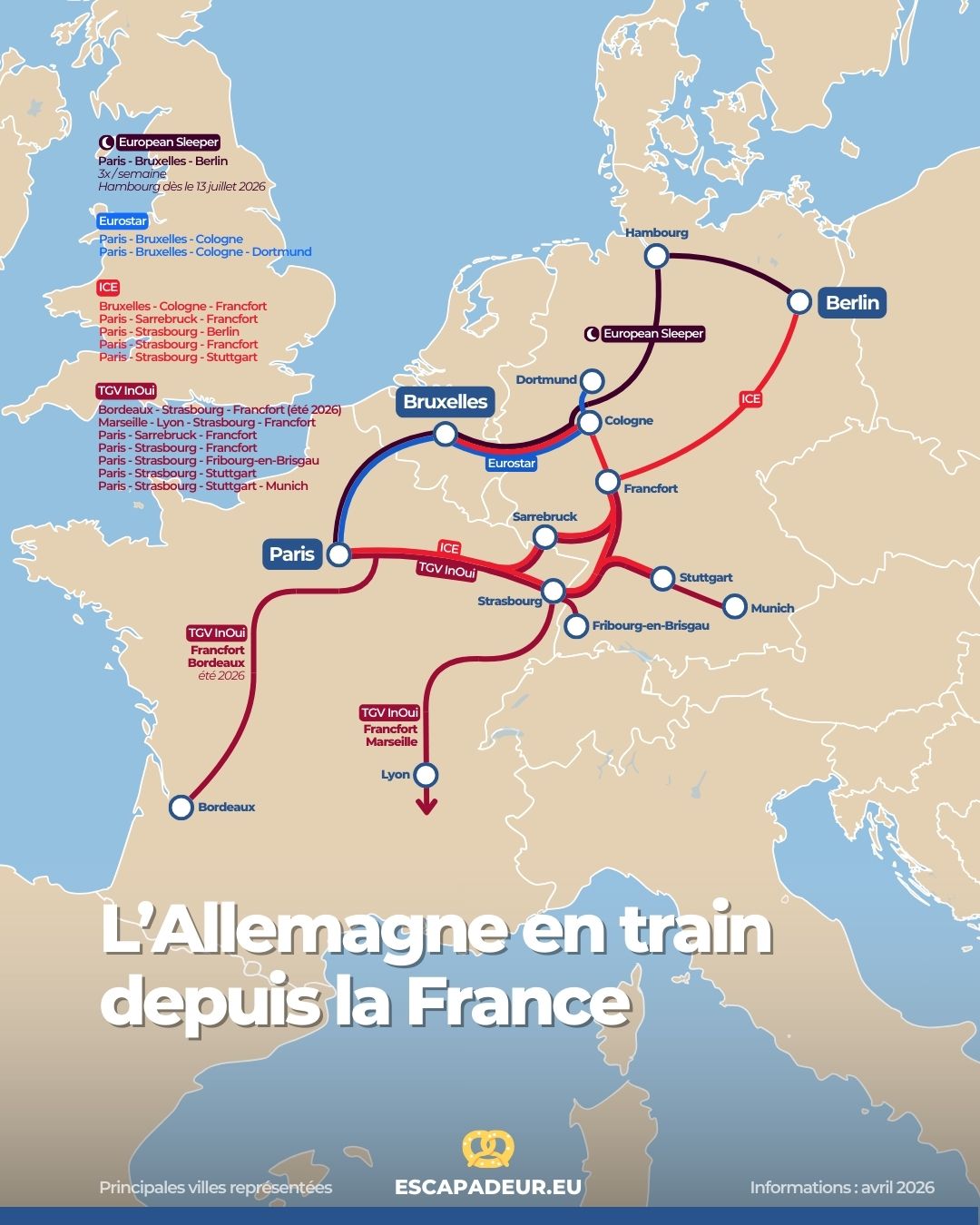 Les principales liaisons ferroviaires France - Allemagne, en 2026