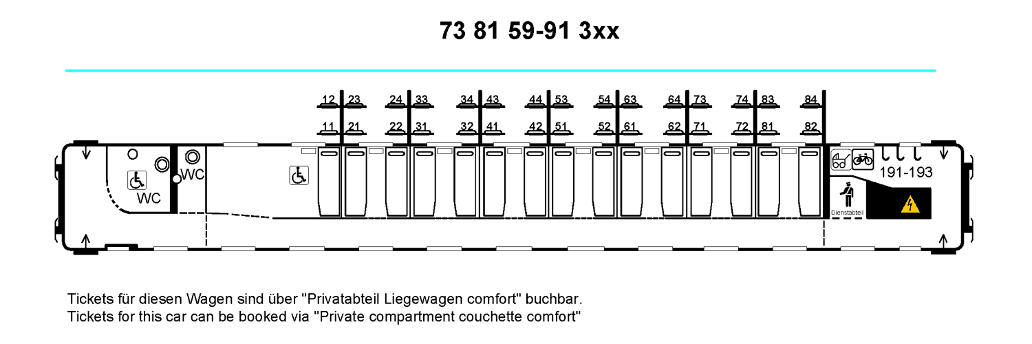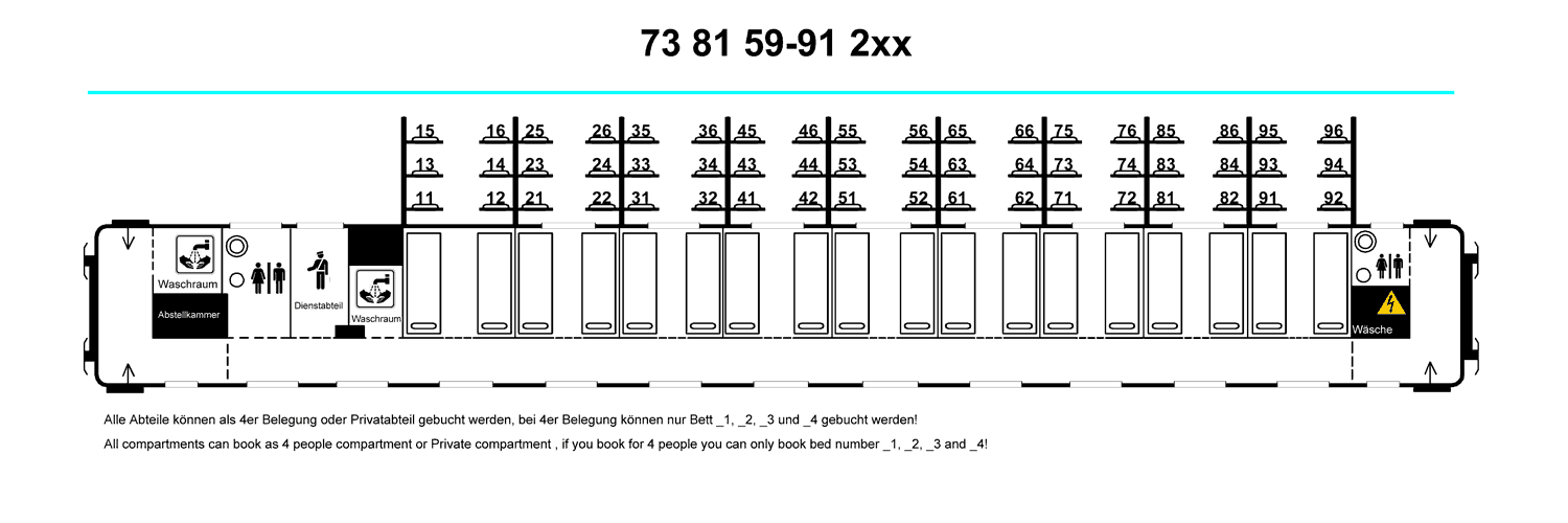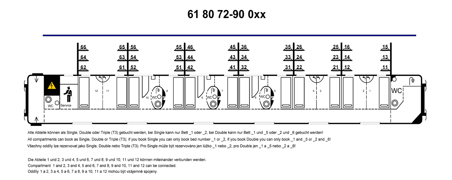 Le plan des cabines du train de nuit Bruxelles – Vienne accompagne mes photos.