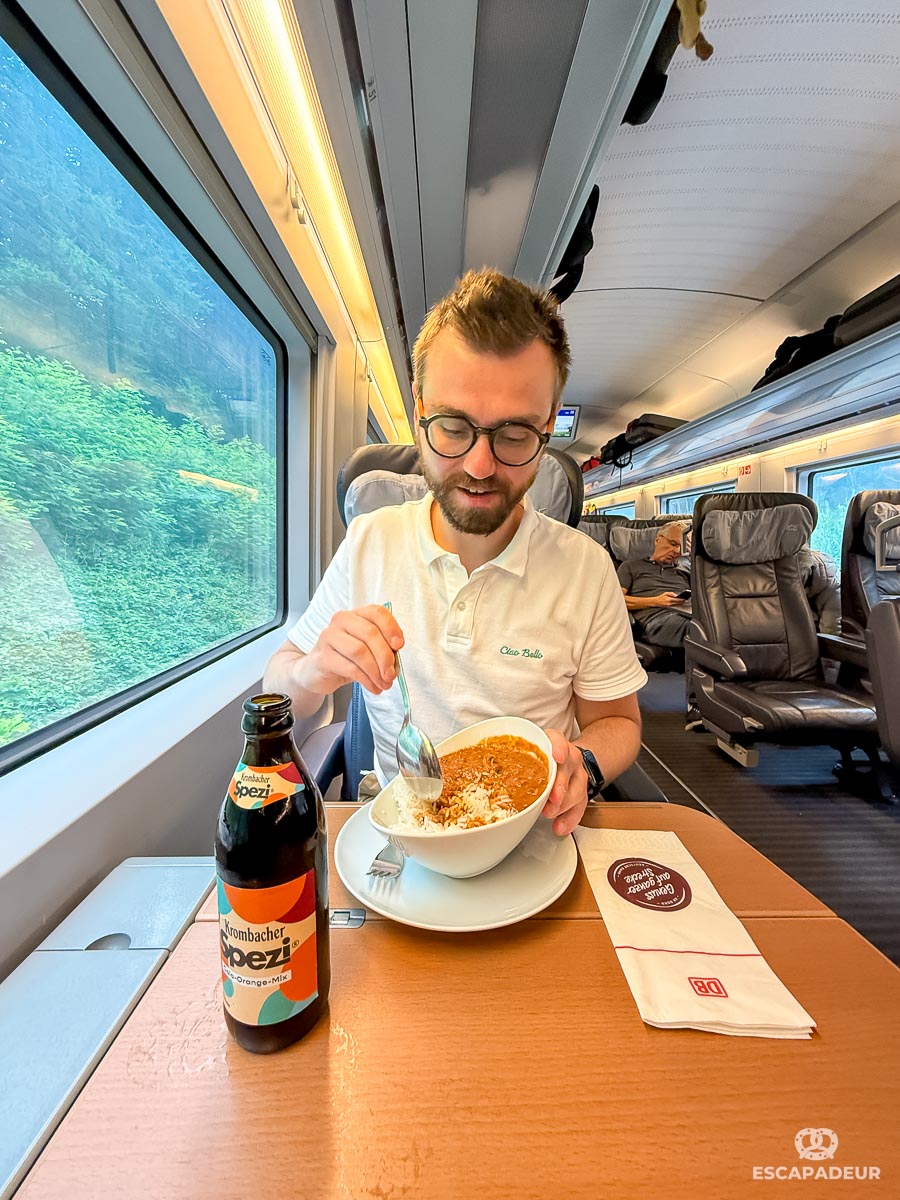 Si vous réalisez un long trajet, en solo ou en couple, je recommande vivement de passer en 1ère classe : la différence de prix est parfois de quelques euros, mais la 1ère classe vous permet d’accéder à l’offre de restauration directement à votre siège, sans besoin de se rendre en voiture restaurant.