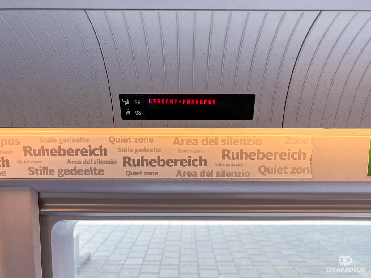 - En 1ère et 2è classe, un ou plusieurs espaces silence « Ruhebereich », où il faut parler à voix basse et où il est interdit de téléphoner. Ces espaces sont également mieux insonorisés par rapport au bruit extérieur.