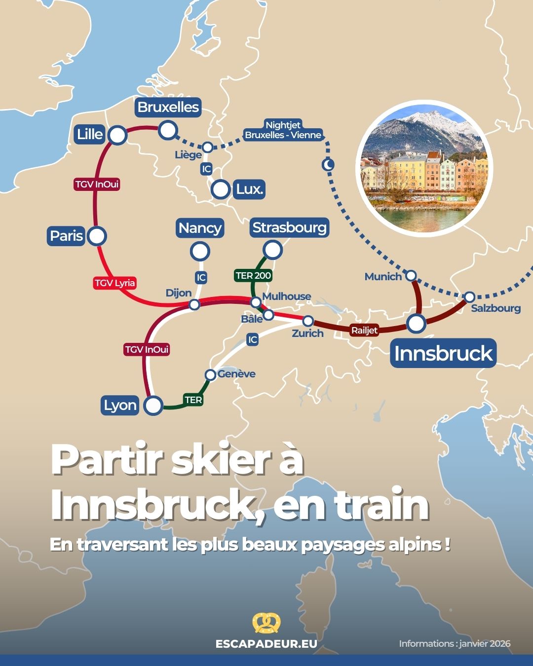 Innsbruck en train depuis Lille, Bruxelles, Liège